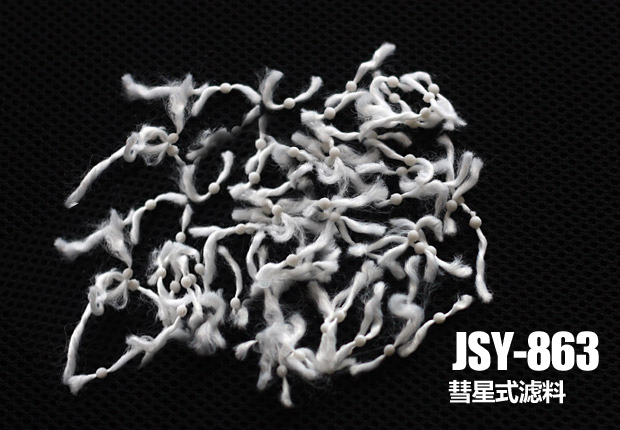 過(guò)濾時(shí),由于核心和纖維絲束的比重差,核心起到了對(duì)纖維的壓密作用,由于核心尺寸較小,過(guò)濾斷面空隙分布的均勻性影響不大,起到過(guò)濾狀態(tài)既有縱向深層過(guò)濾,又有橫向深層過(guò)濾,從而提高了濾床的截污量、過(guò)濾精度和過(guò)濾速度。反沖洗時(shí),由于核心和纖維絲束比重差,纖維絲束隨反沖洗水流而散開(kāi)產(chǎn)生較強(qiáng)的擺動(dòng),再經(jīng)過(guò)空氣擦洗,濾料之間相互碰撞產(chǎn)生較強(qiáng)的擺動(dòng)、翻轉(zhuǎn),強(qiáng)化了反沖洗時(shí)濾料受到的機(jī)械作用力,使附著在纖維絲束表面的懸浮物顆粒很容易脫落,提高了纖維過(guò)濾體反沖洗洗凈度,反沖洗耗水量小。