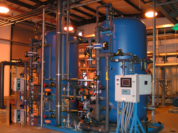 水處理的沉淀和澄清過(guò)程,把水中一部分較大的固體顆?;蛉菀壮两档碾s質(zhì)加以去除,但要進(jìn)一步使水凈化,就得利用過(guò)濾的方法,使水通過(guò)石英砂過(guò)濾器中從上而下、由小而大的不同顆粒的濾料層后,將水中的細(xì)小顆粒、膠體、有機(jī)物等雜質(zhì)截留下來(lái),從而使水得到進(jìn)一步的澄清和凈化,降低水的渾濁度。根據(jù)設(shè)備水頭損失的情況或過(guò)濾器運(yùn)行的時(shí)間確定石英砂過(guò)濾器的反沖時(shí)機(jī)。通過(guò)石英砂過(guò)濾器上所配置的各類閥體的開(kāi)合對(duì)設(shè)備內(nèi)部石英砂濾料進(jìn)行反沖洗,將沉積在介質(zhì)上的雜物沖洗干凈后,設(shè)備隨即又進(jìn)入了一個(gè)新的過(guò)濾周期。