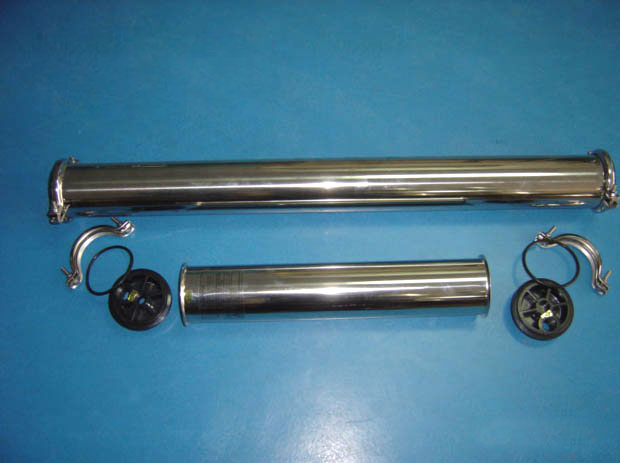 不銹鋼RO膜殼4" 反滲透膜殼是反滲透、納濾、超濾等裝置的配套產(chǎn)品,外殼采用304無縫不銹鋼鋼管制造,內(nèi)桶件為不銹鋼、ABS增強工程塑料,NBR橡膠O型閥。耐壓力:3MPa,適用溫度:0℃-50℃。 主要技術(shù)參數(shù)